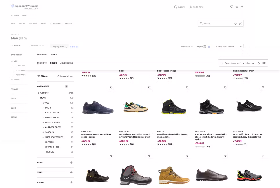 Customize search results presentation, filters & sorts on your homepage, product listing pages and other browse experiences. Easily add recommendation carousels and other UI components using the InstantSearch library.